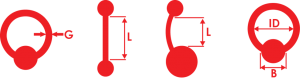 Sizing of the jewellery depends on 2 main measurements, the outside diameter or gauge of the shaft and the length of that shaft in the case of a Barbell, and in the instance of Rings and CBBs, the internal diameter is the more important measurement. This is because the internal diameter determines the extent of the curvature of the shaft in the piercing and how much strain is placed on that piercing.